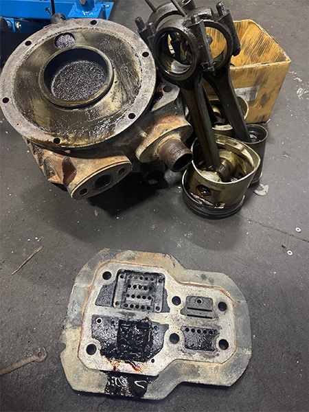 Причина обращения — плохо качает, отсутствуют: маховик, воздушные фильтры и холодильник.