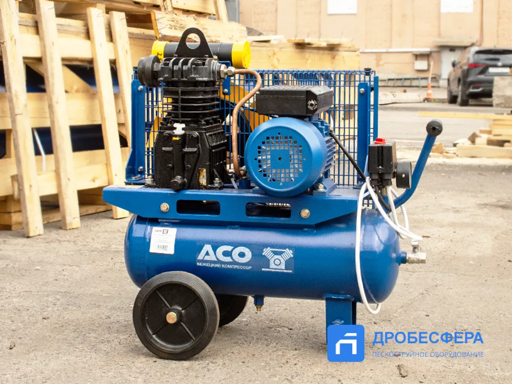 На ресивере устанавливается компрессорная головка поршневого типа, которая сопряжена с двигателем посредством ременного или прямого привода. От вала мотора вращательный момент передается коленчатому валу пневмоблока. Шатунно-кривошипный механизм преобразует энергию крутящего момента для сообщения работы поршням, совершающим возвратно-поступательные движения в гильзовых цилиндрах.