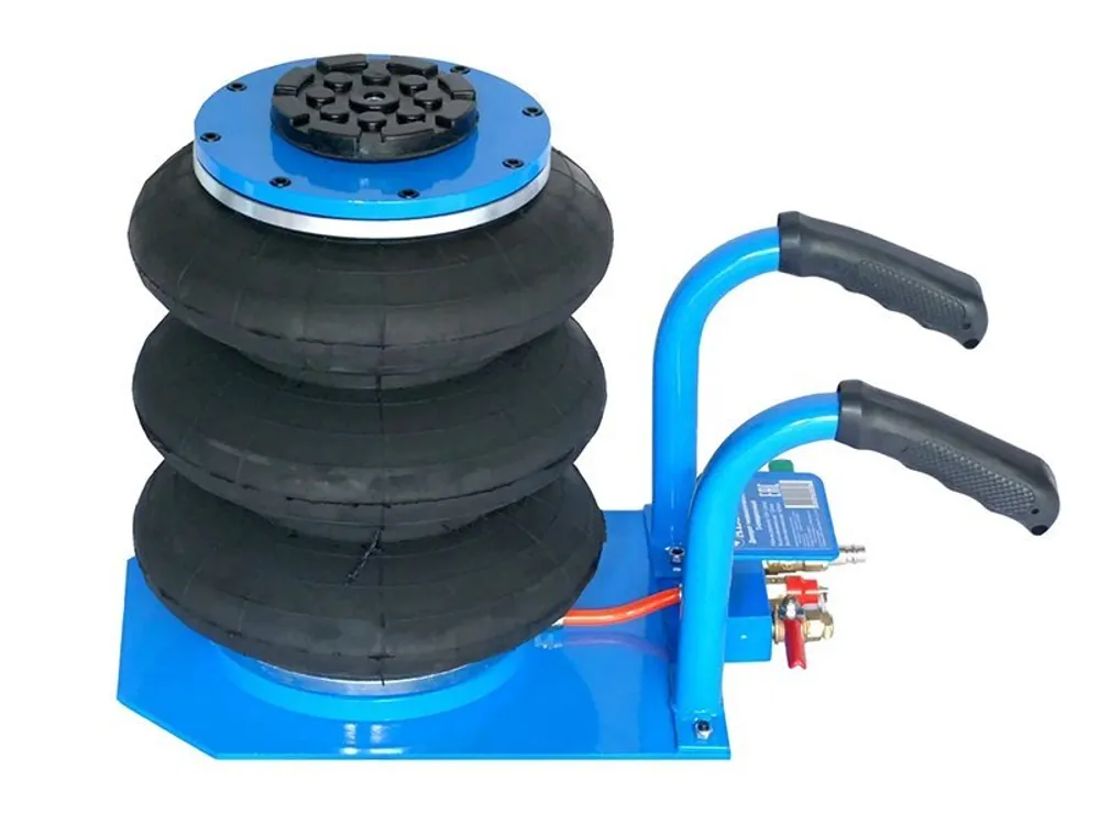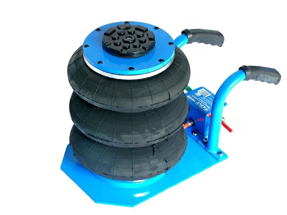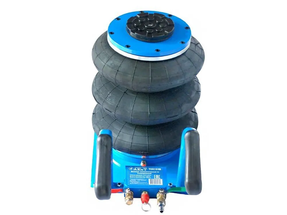 Крупным организациям автосервиса, СТО, автотранспортным и промышленным предприятиям, где имеются воздушные компрессоры, китайские разработчики предлагают в качестве вспомогательного оснащения использовать пневматический трехсекционный домкрат AE&T T08103B грузоподъемностью 3 тонны. Устройство предназначено для подъема легкового, а также легкого грузового и коммерческого транспорта с целью ремонта колес, замены резины, осмотра днища и нижних частей машин.