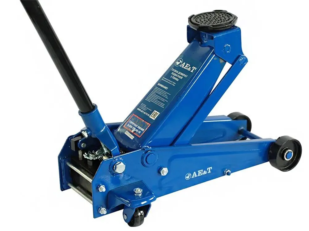 Для оснащения СТО, автотранспортных предприятий с парком легкового и легкого коммерческого транспорта, а также таксопарков, шиномонтажных и других ремонтных мастерских предлагаем использовать китайский подкатной домкрат AE&T T31203A для профессионального использования. Устройство грузоподъемностью 3 тонны популярно благодаря своей мобильности и простоте в эксплуатации.