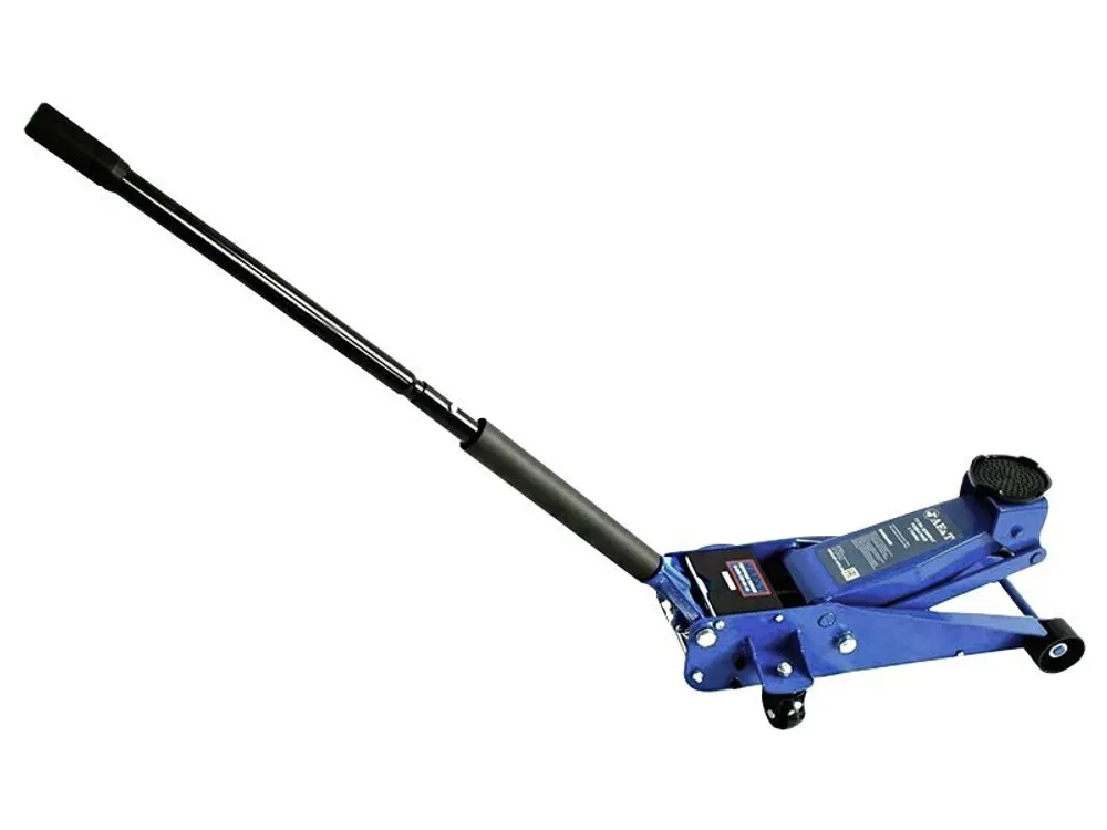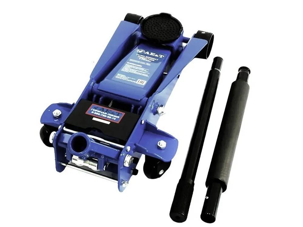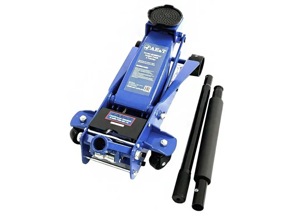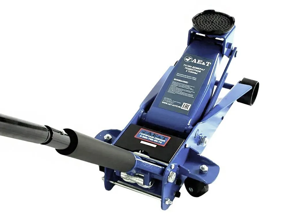 Если транспорт, находящийся в обслуживании или ремонте не превышает по весу 3 тонны, рекомендуем иметь в оснащении такое устройство как профессиональный подкатной двухнасосный домкрат AE&T T31304.