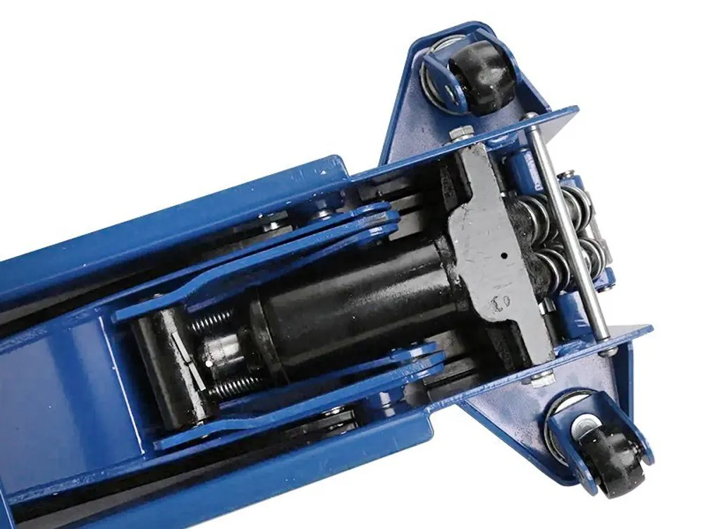 Конфигурация представляет собой надежную конструкцию достаточной длины, чтобы удобно было работать с домкратом при любой форме порогов автотранспорта. Длинная ручка-рычаг позволяет одновременно качать два встроенных гидравлических насоса, обеспечивая плавный подъем с высоты 75 мм до 505 мм.
