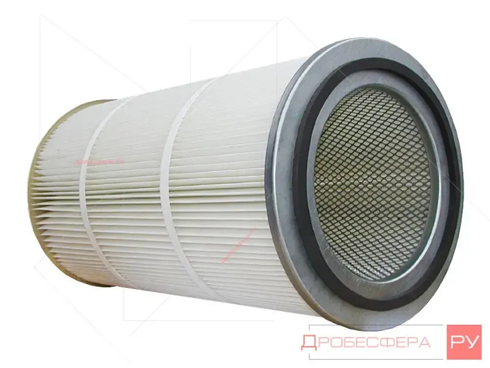 Гофрированный материал из полиэстера фильтрующей площадью 11 кв. м обеспечивает эффективную очистку воздуха, поступающего из кабины пескоструйной камеры, от загрязнений в виде пыли и частиц абразива, отколовшихся при соударении с обрабатываемой поверхностью. В конструкции фильтр-камеры предусмотрена очистка фильтра от пыли путем встряхивания патрона.