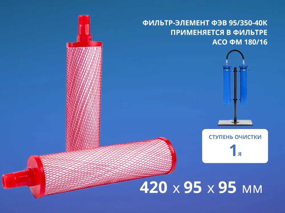 Для функционирования этого модуля необходимо установить в его колонны фильтры первой и второй ступени очистки воздуха, которые обеспечивают повышение степени чистоты до 4 класса. Фильтром первой ступени очистки выступает ФЭВ 95/350-40К, пропускающий в минуту до 3 кубометров сжатого воздуха давлением до 10 атмосфер.
