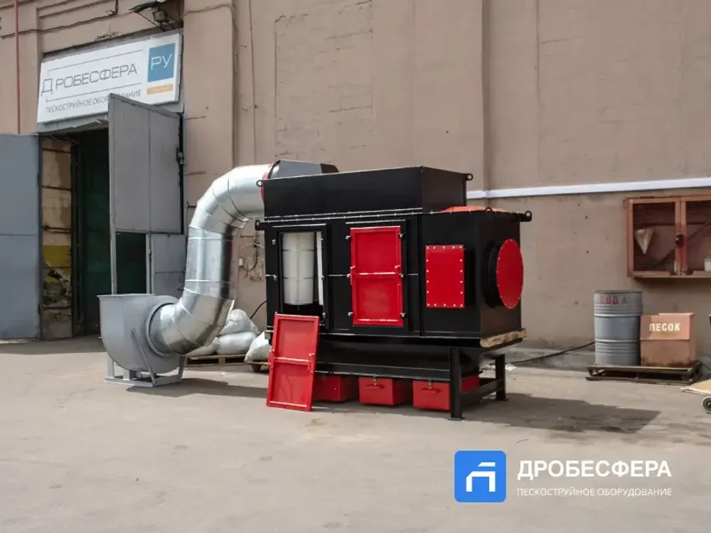 И, конечно же, это в первую очередь фильтр. А значит воздух, удаленный из пескоструйной камеры, перед выбрасыванием на улицу (или в соседнее помещение), будет полностью очищен от пыли.