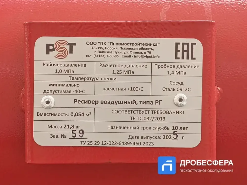 - Паспорт на сосуд, работающий под давлением - 1шт.