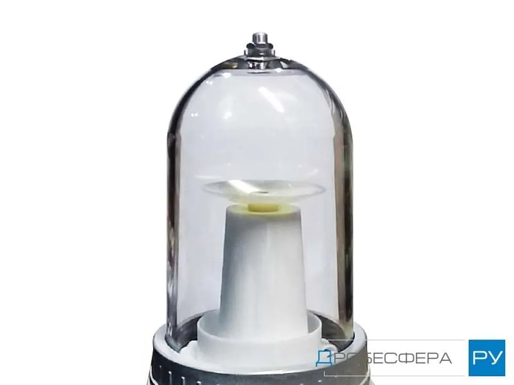 Фильтр работает по принципу циклонного сепаратора, выдавливая влагу из воздуха под воздействием центробежной силы. Накапливание конденсата фиксируется визуально по наполнению колбы, удаление осуществляется вручную.