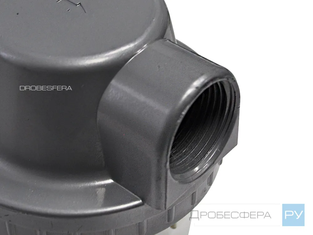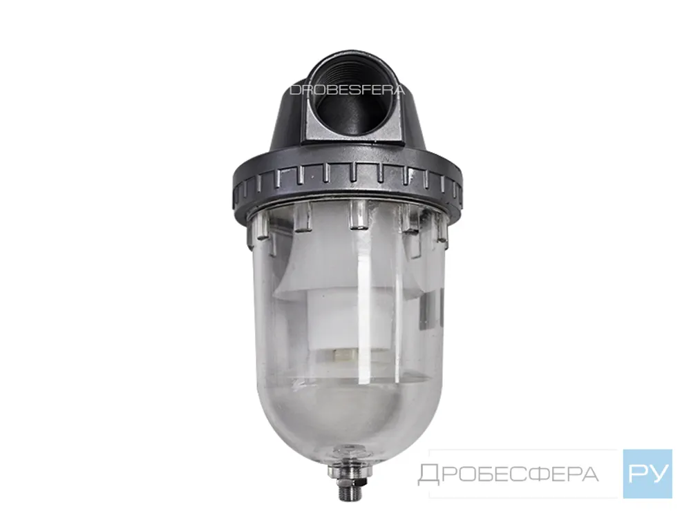 Устройство работает по принципу циклонного сепаратора, отбирая из воздуха крупные капли влаги и масла. Конденсат собирается в колбе. Его количество легко отслеживается визуально. Слив собравшейся эмульсии осуществляется вручную.