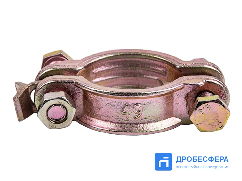 Комплектация абразивоструйного аппарата или пневмоинструмента напорными рукавами диаметром 39-49 мм обусловливают спрос на крепеж типа быстроразъемных сцеплений и силовых хомутов 1¼".