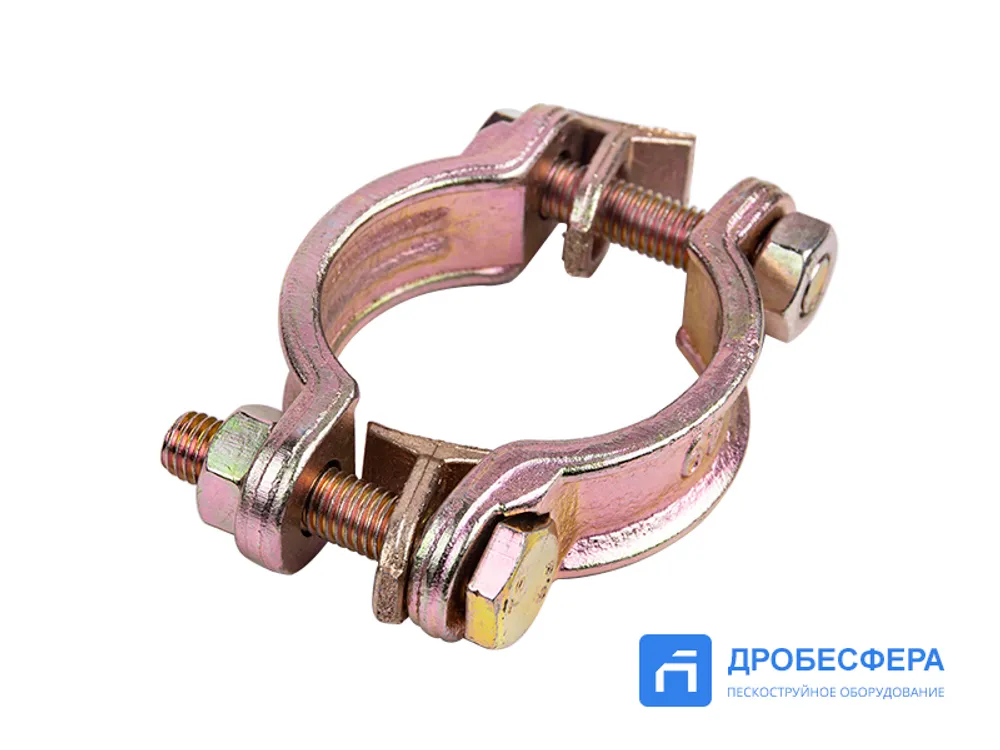 Хомут выполнен из ковкого чугуна и для защиты от быстрого износа имеет гальваническое покрытие. Использование закрепляющего рукав на сцеплениях крепежа исключает разгерметизацию магистрали, потерю давления и другие нежелательные при работе помехи.