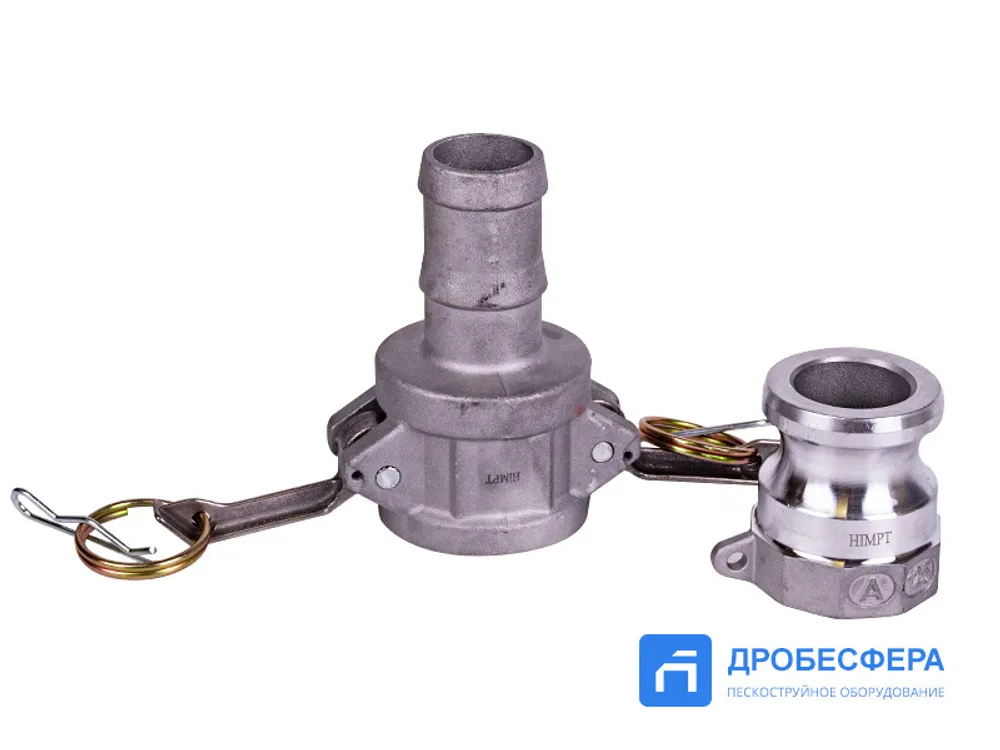 Изготавливается из сплава, устойчивого к механическому воздействию, выдерживающему резкие перепады температуры и давления рабочего потока. Камлок позволяет удлинить пескоструйный рукав или воздушный шланг, надежно соединив между собой.