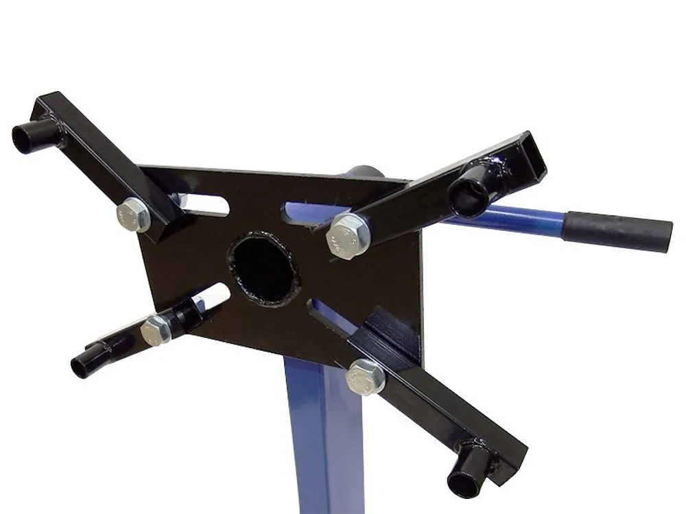 Функциональность обеспечивается перемещением и регулировкой крепежных кронштейнов. Крепежный узел фиксируется в шести положениях. Сбалансированный центр тяжести обеспечивает устойчивость конструкции при закреплении двигателя и операциях, проводимых над узлом.