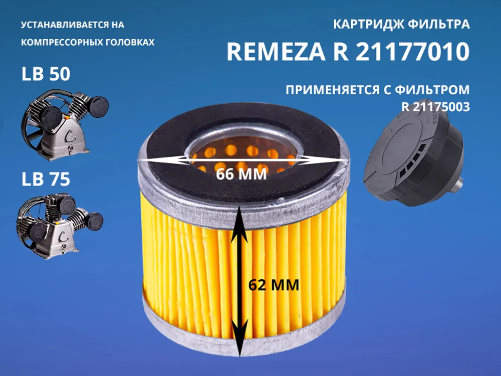Картридж фильтра воздушного D.66x62 мм Remeza LB50/75 R 21177010 - 21175007