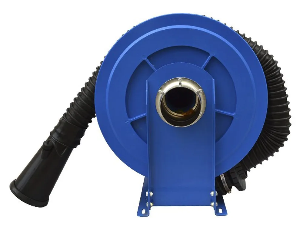 Комфортность в работе обеспечивает длина шланга (8 метров), которой достаточно, чтобы подключить к вытяжке даже удаленно стоящее транспортное средство. Шланг подключается к выхлопной трубе посредством раструба, который не является универсальным, но посредством переходников нужной конфигурации становится таковым.