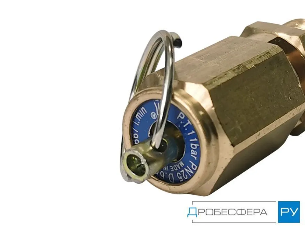 Превышение допустимого предела может стать причиной аварии с разрывом емкости. Клапан настроен на давление 11 бар, не позволяет компрессии превышать этот показатель.