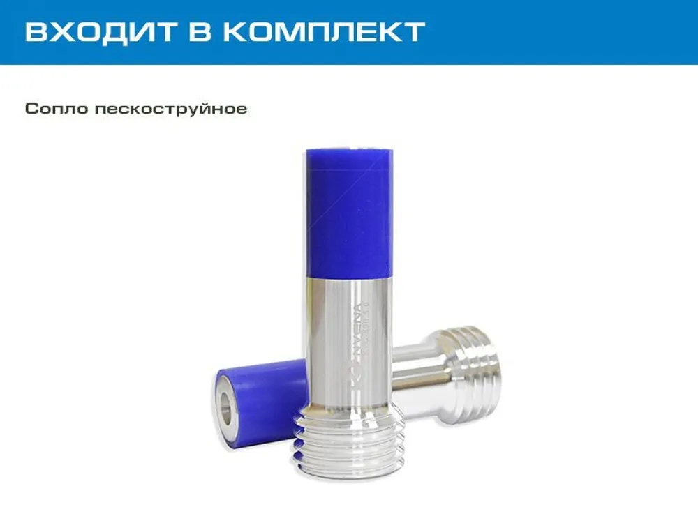 Один из наиболее полных комплектов для пескоструйной обработки: пескоструйный аппарат с большой загрузочной емкостью и системой КПДУ (дистанционное управление) в сочетании с правильно подобранным соплом, гибким рукавом и полной защитой оператора, повысит эффективность и скорость пескоструйной обработки.