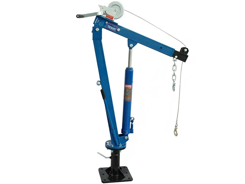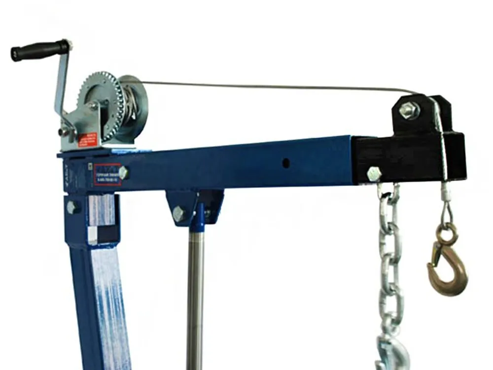 Для работы с тяжеловесными грузами, механическими узлами автотранспорта и другими предметами, которые необходимо перемещать на небольшое расстояние, в автосервисах, на складах и даже на бортах грузовых автомобилей устанавливаются такие приспособления как китайский кран AE&T T62103A грузоподъемностью 1 тонна с лебедкой.