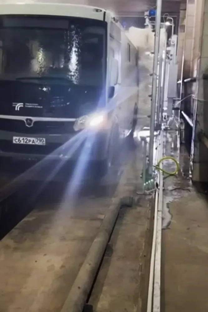 Для больших автобусных или троллейбусных парков решена проблема быстрой очистки транспорта от загрязнений.