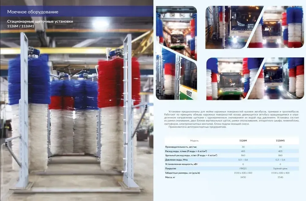 Благодаря монтажу на автотранспортных предприятиях стационарной мойки 1126М1 для автобусов обеспечивается процесс мойки до 30 автобусов в час.