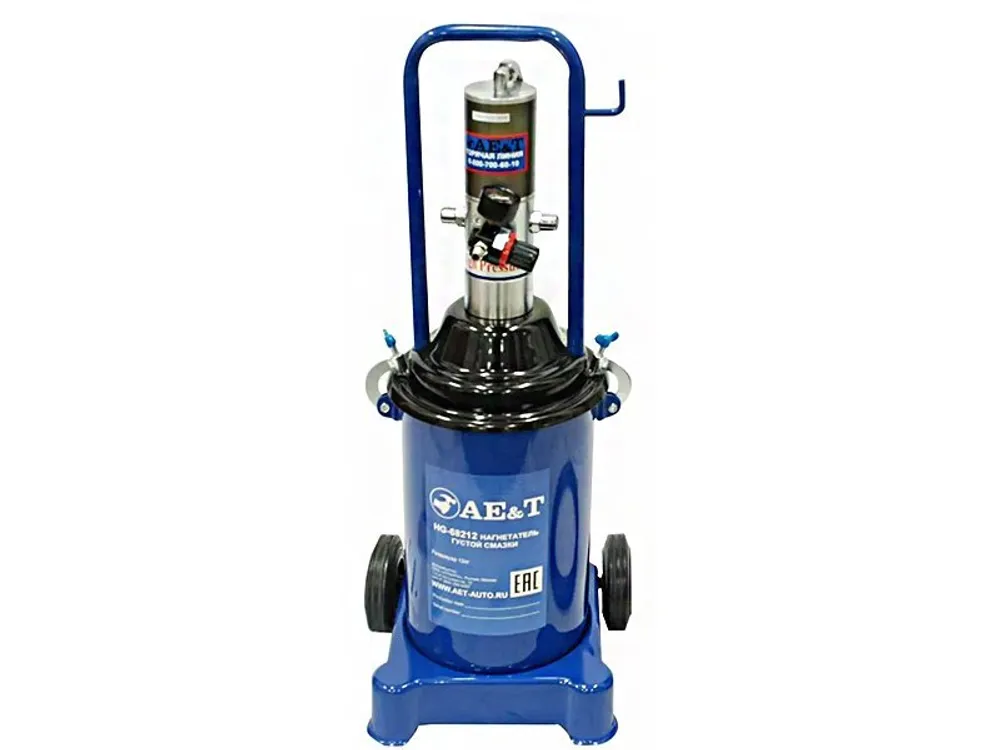 Автосервисы и СТО с большой проходимостью, а также автотранспортные предприятия с собственным парком грузового, специализированного и коммерческого транспорта часто сталкиваются с большим объемом смазочных работ. Для таких операций часто используется китайский пневматический нагнетатель густой смазки AE&T HG-68212.