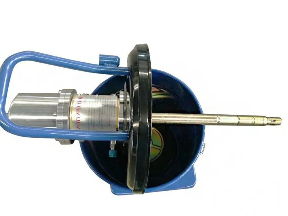 Устройство с транспортировочной ручкой и колесами свободно перемещается в пределах рабочей площадки даже при полной загрузке бака емкостью 45 кг. Функционал состоит из плунжерного насоса с пневмоприводом, для которого необходима подача сжатого воздуха давлением 6-8 бар.
