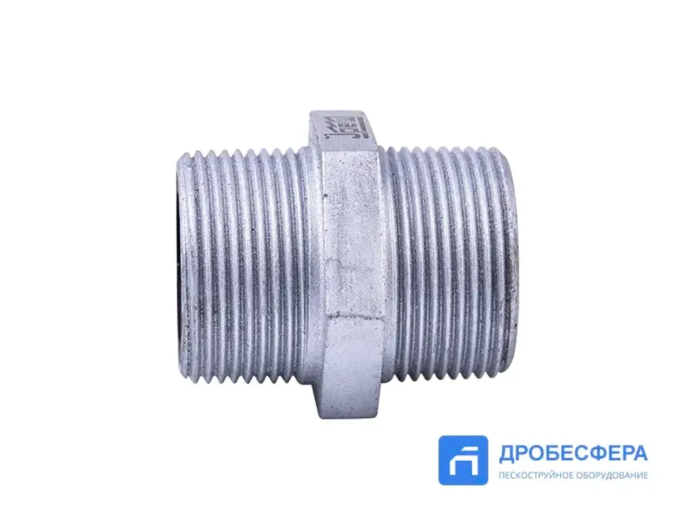 Этот компонент используется при подключении дозирующего клапана подачи абразива к пескоструйному аппарату. Так же ниппель применяется при установке байонетного сцепления в тройник, через который абразив подается в поток сжатого воздуха.