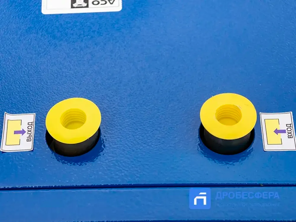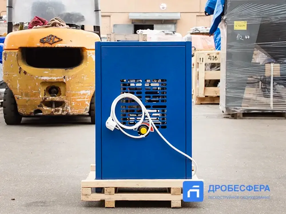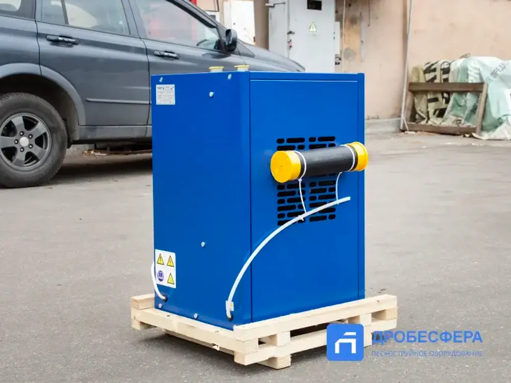 Размер данной установки при своих габаритах 540х410х540 мм с общим весом 30 кг с двумя теплообменниками (один для воздуха, второй для холодильного оборудования) позволяет произвести установку в любом месте производственного помещения с подключением к электросети в 220 Вт. Данная модель ОВ-42М1 имеет производительность 800 литров в минуту. Максимальное рабочее давление - 16 атмосфер.