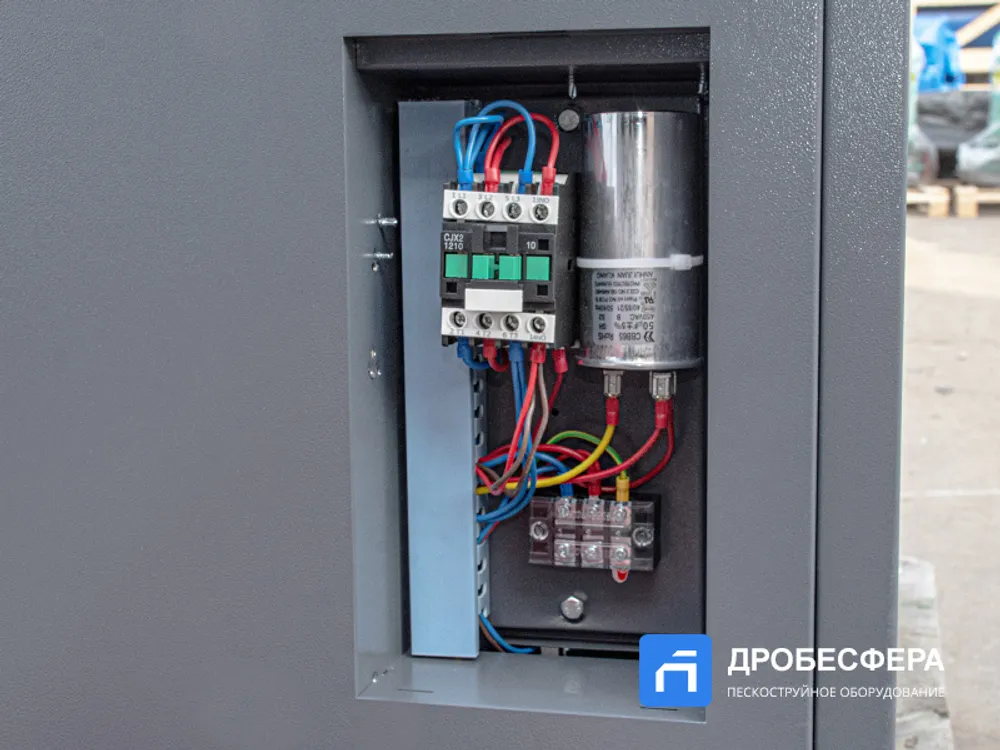 Компактная сборка осушителя Ironmac DRYER I-50 обеспечивает возможность установки в малогабаритных мастерских и подразделениях предприятий. В металлическом корпусе смонтирован электродвигатель мощностью 1,262 кВт, а также радиатор типа воздух/фреон, в котором и создаются условия для выпадения влажных составляющих сжатого воздуха в виде конденсата.