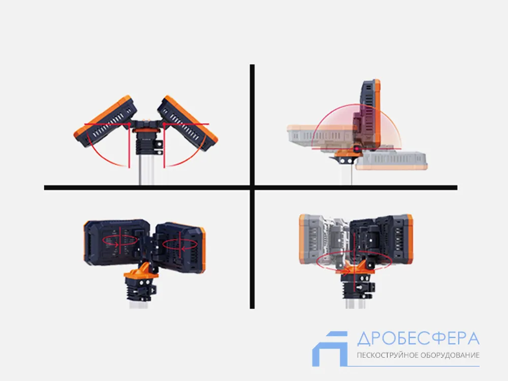 Конфигурация мачты телескопического типа предусматривает три выдвижные «ноги», на которые распределяется вес мачты. Это придает конструкции устойчивость и исключает необходимость поддержки прожектора руками или другими фиксаторами.