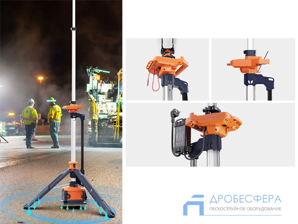 Опора на три выдвижные «ноги» исключает необходимость поддерживания прожектора вручную или использования дополнительных фиксаторов.