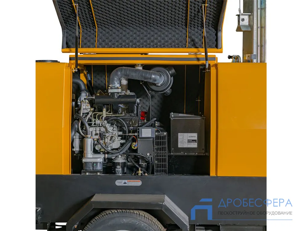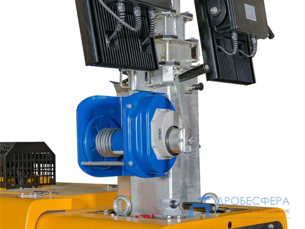 Полной заправки 80-литрового бака достаточно для работы в течение 50 часов, так как потребление дизтоплива не превышает 1,5 л/час. Мачта с оцинкованным покрытием выдвигается на высоту до 9 метров (два пузырьковых уровня). Делается это вручную при помощи лебедки.