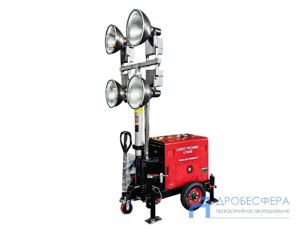 Предлагаем в этой категории обратить внимание на китайскую разработку — осветительную мачту LT640 компании Light-Techno. Агрегат собирается в металлическом корпусе, оснащенном колесами и транспортировочной ручкой. Легко передвигается в пределах рабочей площадки.