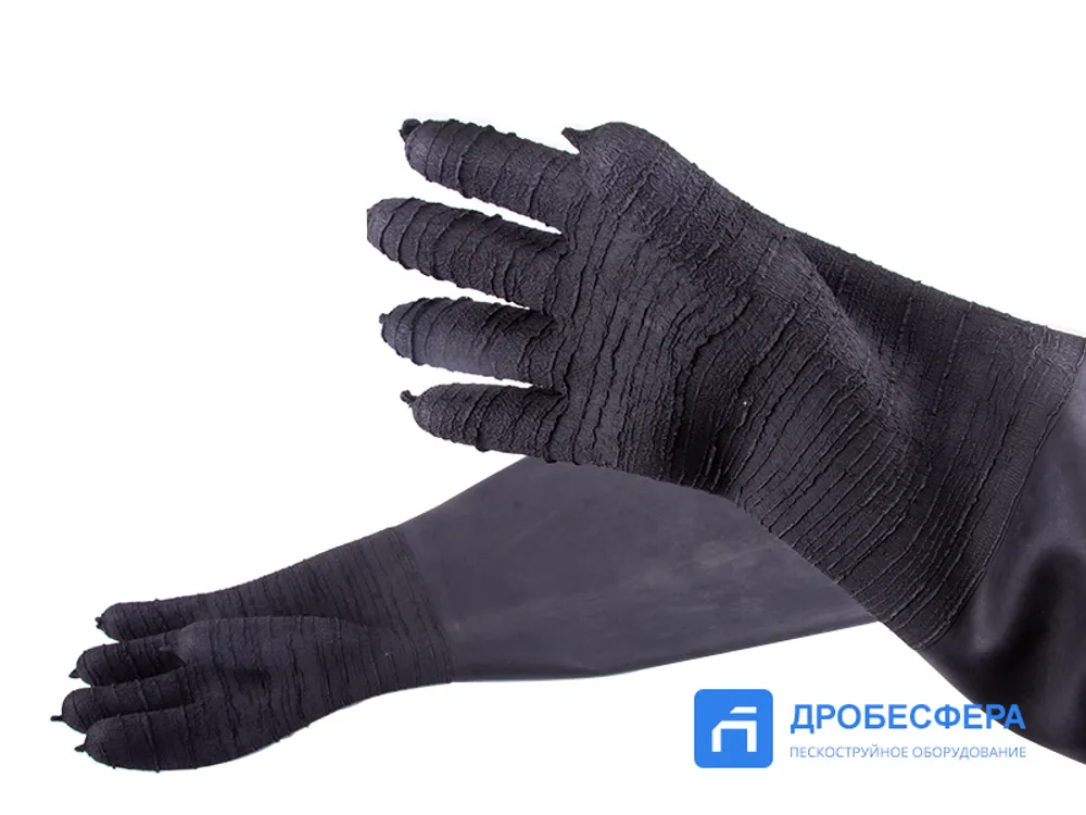 При интенсивном процессе абразивоструйной обработки деталей на промышленном предприятии, на СТО, в мастерских с помощью пескоструйных камер со средними габаритами рабочей кабины не обойтись без таких средств индивидуальной защиты пескоструйщика как камерные перчатки SBG-600ST.