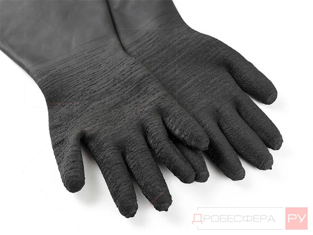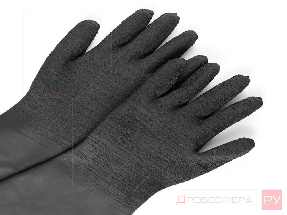 Перчатки из текстурированного бесшовного каучука позволяют оператору надежно удерживать деталь в руках, особенно, если объект небольшого размера. Это идеальная защита от рикошетного удара абразивных частиц.