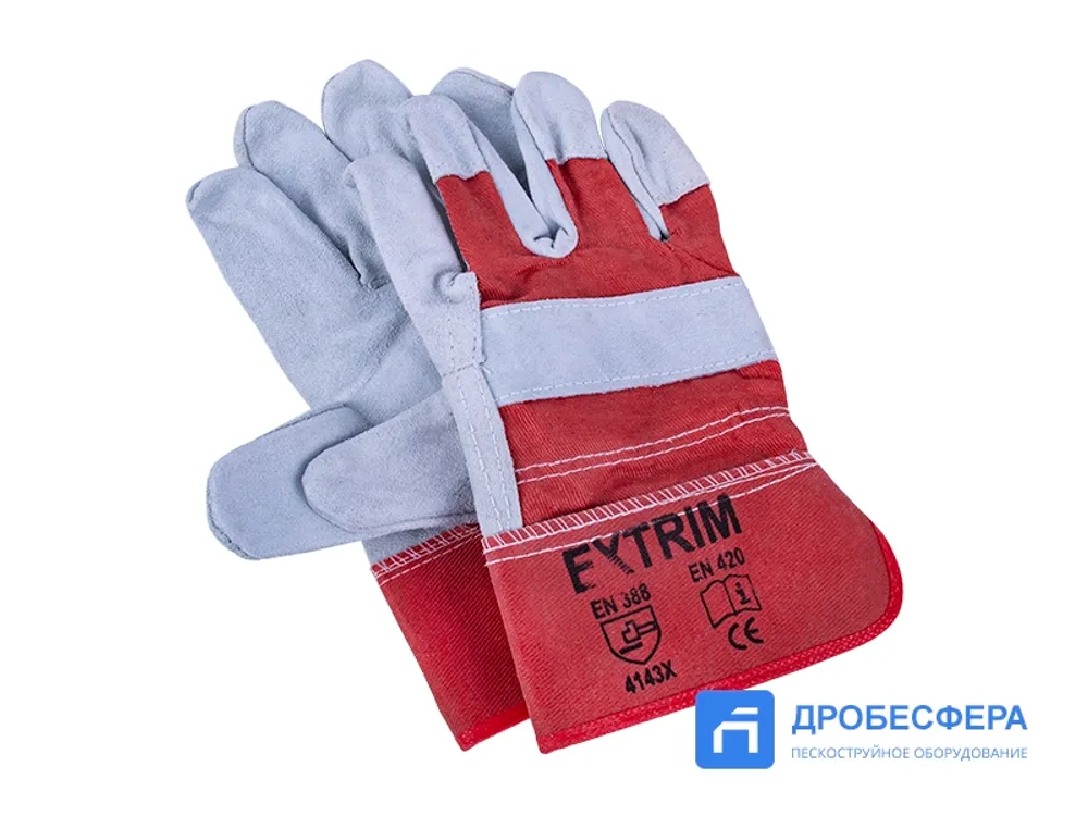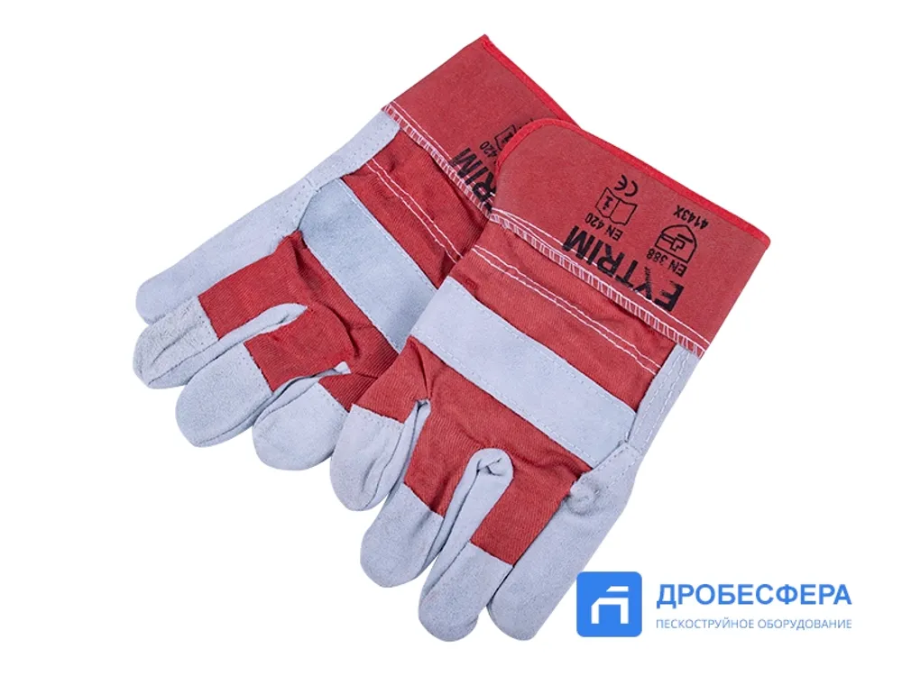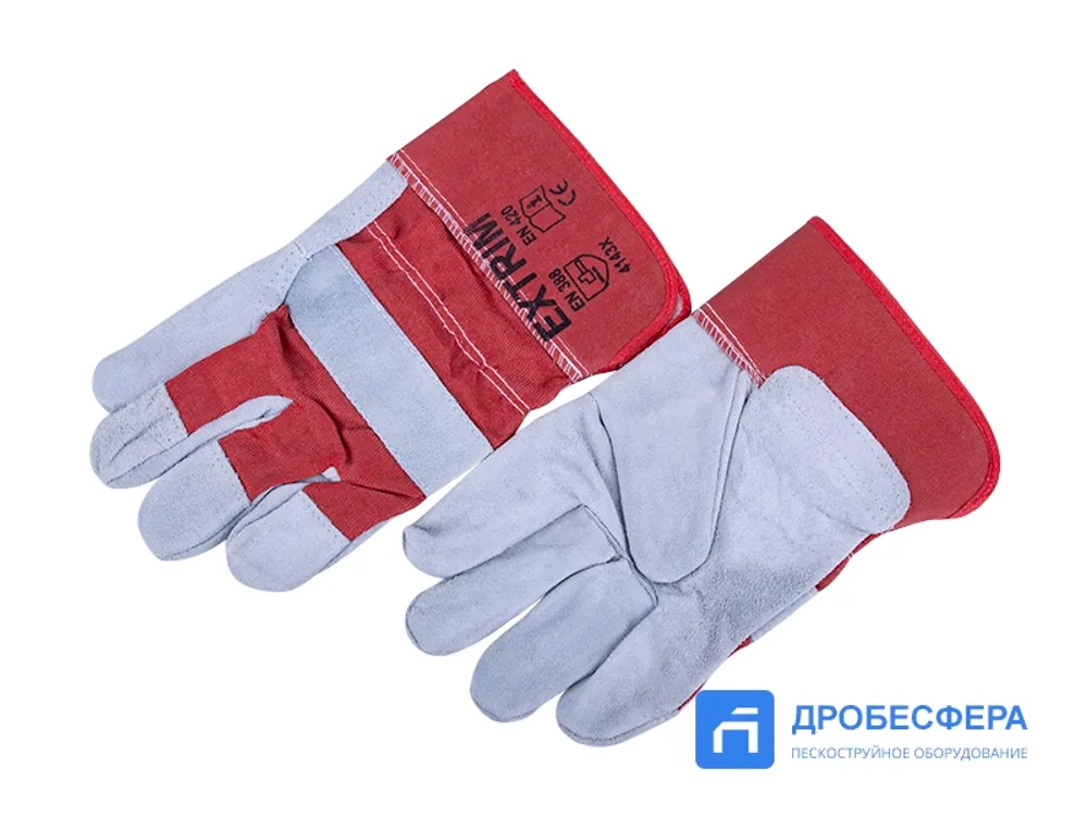 Перчатки пескоструйщика комбинированные спилковые, бело-красные арт. EXT white/red