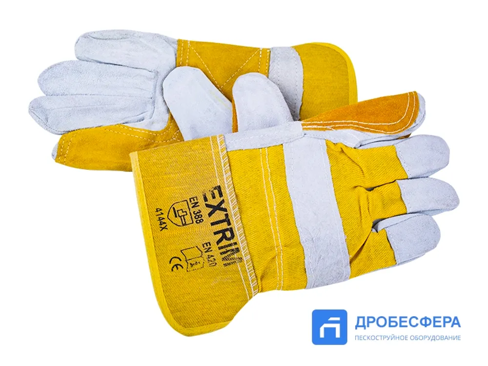 Перчатки пескоструйщика комбинированные спилковые, желто-серые арт. EXT yellow/grey
