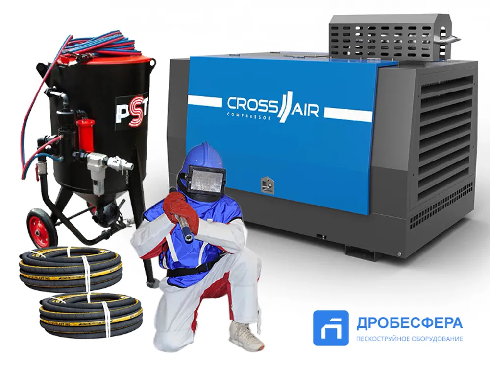 Мы предлагаем комплект пескоструйного оборудования на базе дизельного компрессора и пескоструйной установки объемом 160 литров.