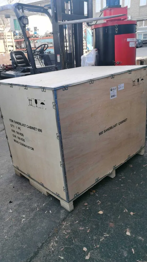 Ещё должно остаться свободное пространство для перемещения пескоструйного сопла, рук оператора и манипуляций с самим изделием.