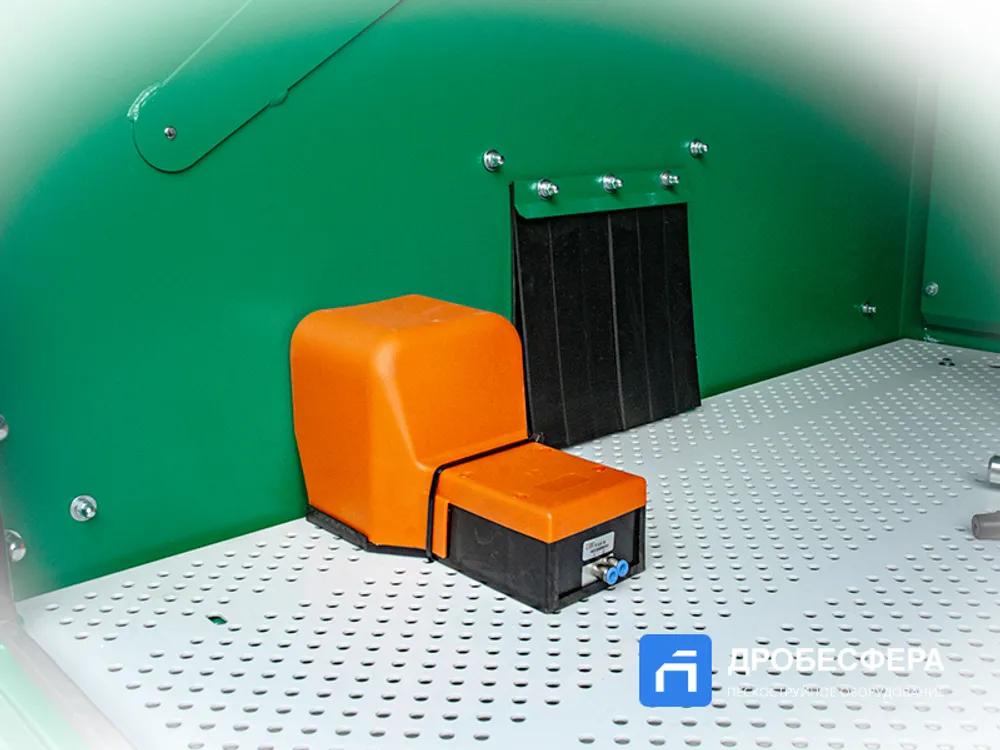 Кабина, где осуществляется обработка, препятствует распространению пыли в пространстве вокруг машины. Ее оснащение полностью исключает воздействие вредных пылевых выбросов и на людей, занятых в работах по соседству, и на оператора, проводящего операции с деталями.