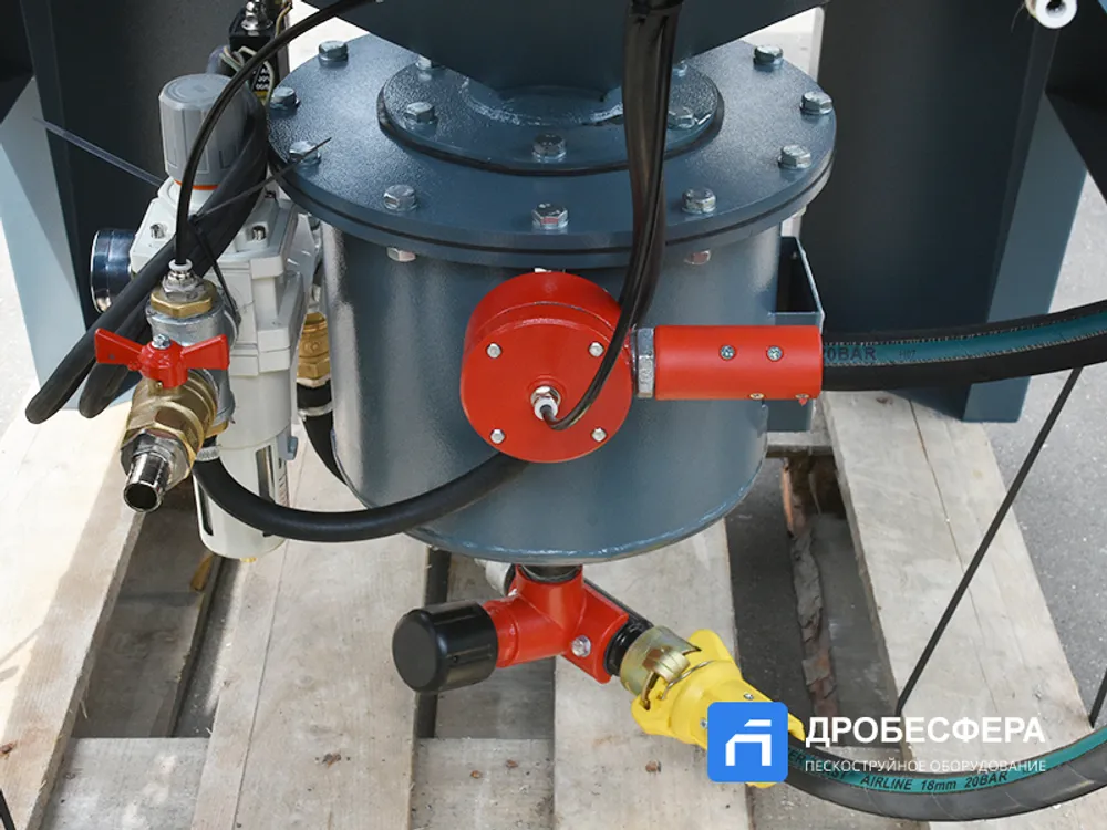 Система автоматического возврата абразива обратно в емкость для абразива.