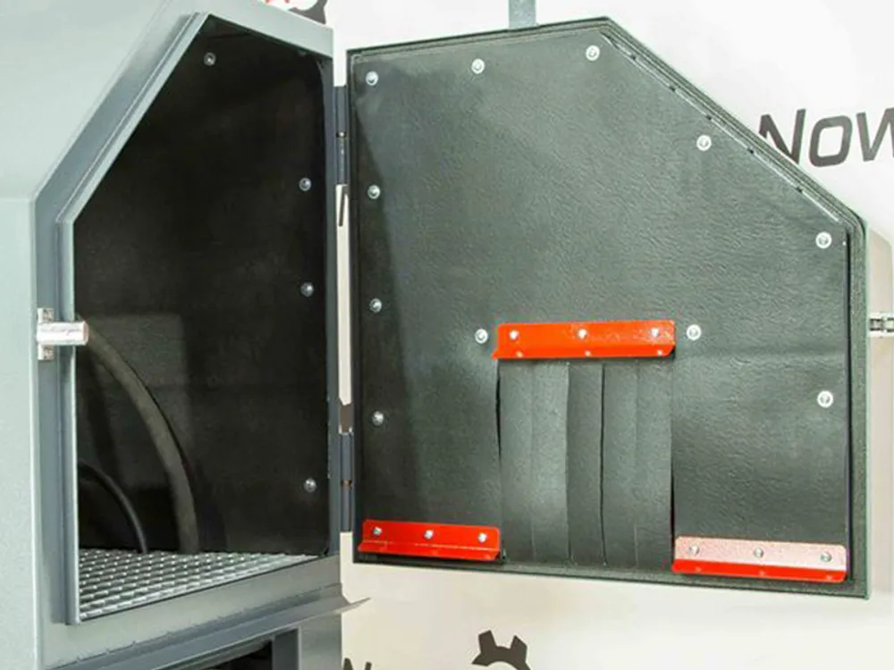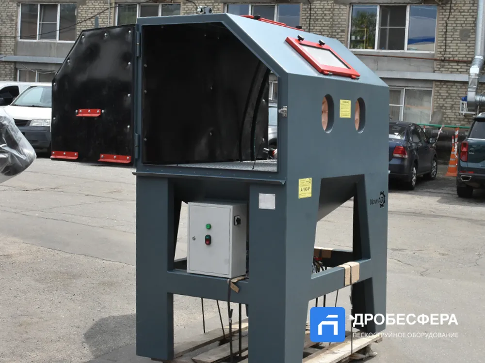 Обработка поверхностей деталей с целью изменить физические характеристики, снять старое покрытие, убрать заусенцы, нагар и окалину, а также других операций, совершаемых абразивоструйным способом, возможна при установке в мастерской или подразделении промышленного предприятия оборудования типа пескоструйной камеры NowAG A-100P.