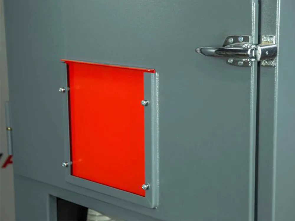 В передней панели камеры имеются отверстия с перчатками для рук оператора. Детали загружаются через боковые двери. Длинные детали при соответствии размеров могут обрабатываться, подаваясь через проходные двери.