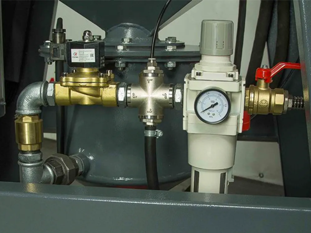Необходимо обеспечить подачу в кабину пескоструйной камеры сжатый воздух рабочим давлением 3,5-7 бар, который установка ежеминутно потребляет в объеме 1300-5600 литров. ФВУ отбирает воздух по окончании обработки, очищает и сбрасывает в окружающее пространство. Периодически фильтр пескоструя необходимо менять.
