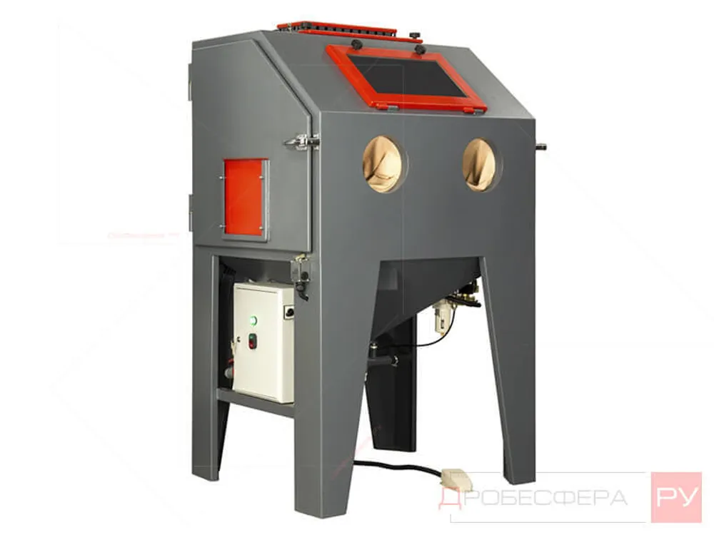 Объема кабины достаточно, чтобы загружать и обрабатывать объемные детали. Абразивный и обдувочный пистолет с соплами, значительно отличающимися по диаметру, обеспечивают высокую эффективность работы оборудования. Расход воздуха при подборе камеры зависит от размера обоих сопел: чем они больше, тем больше расход сжатого воздуха.