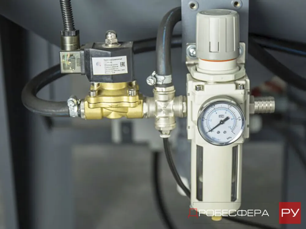 Импульс подается из ресивера с установленным давлением, которое не способно разрушить фильтрующую конструкцию. Повысить эффективность очистки фильтра позволяет отсутствие защитной сетки вокруг элемента. Стряхиваемая пыль опадает в пылесборник, который легко отсоединяется с целью утилизации загрязнений.