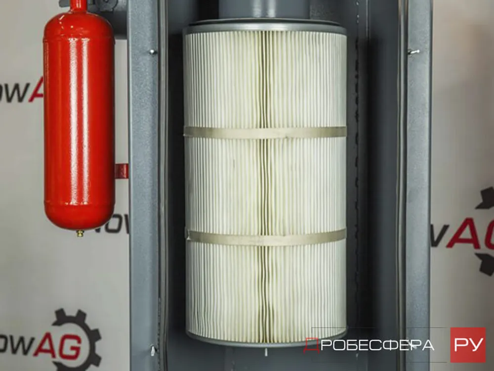 Фильтр представляет собой гофрированную многослойную конструкцию из утолщенного полиэстерового полотна. Проходя через такой фильтр, частицы механических примесей, не попавшие сразу в пылесборник под действием гравитации, остаются на полотне, с которого удаляются посредством кратковременно импульса сжатым воздухом.