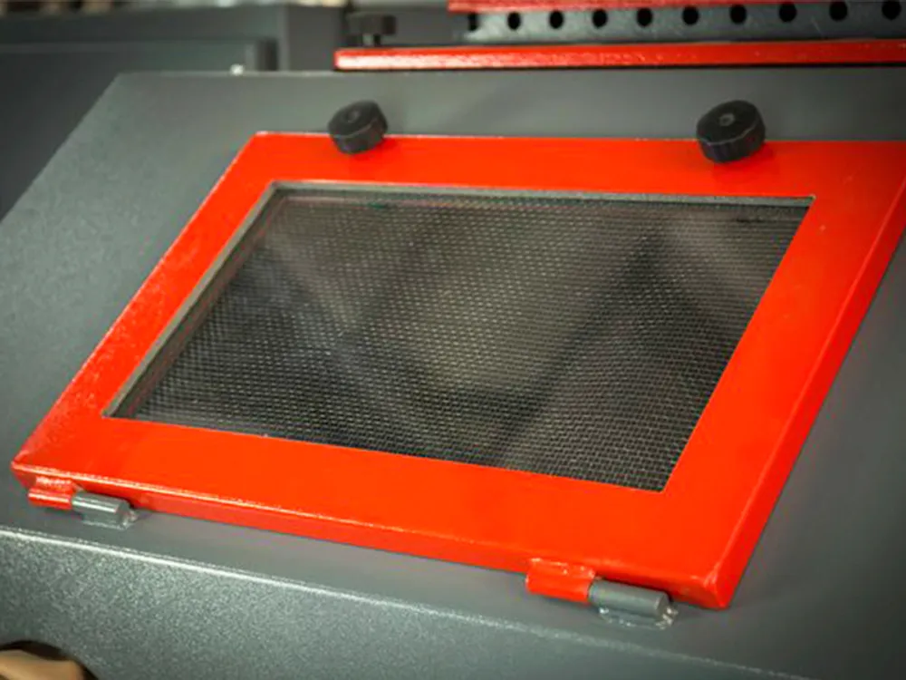 Для управления обдувочным пистолетом и поворота деталей предусмотрены отверстия во фронтальной панели, к которым крепятся перчатки для рук оператора.
