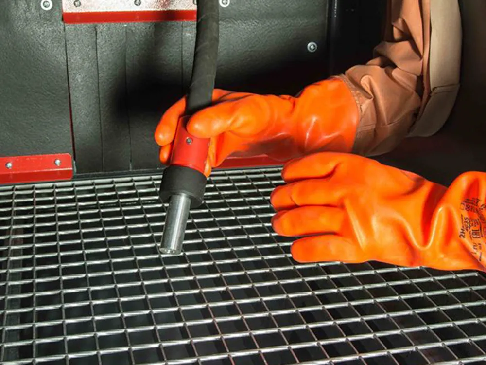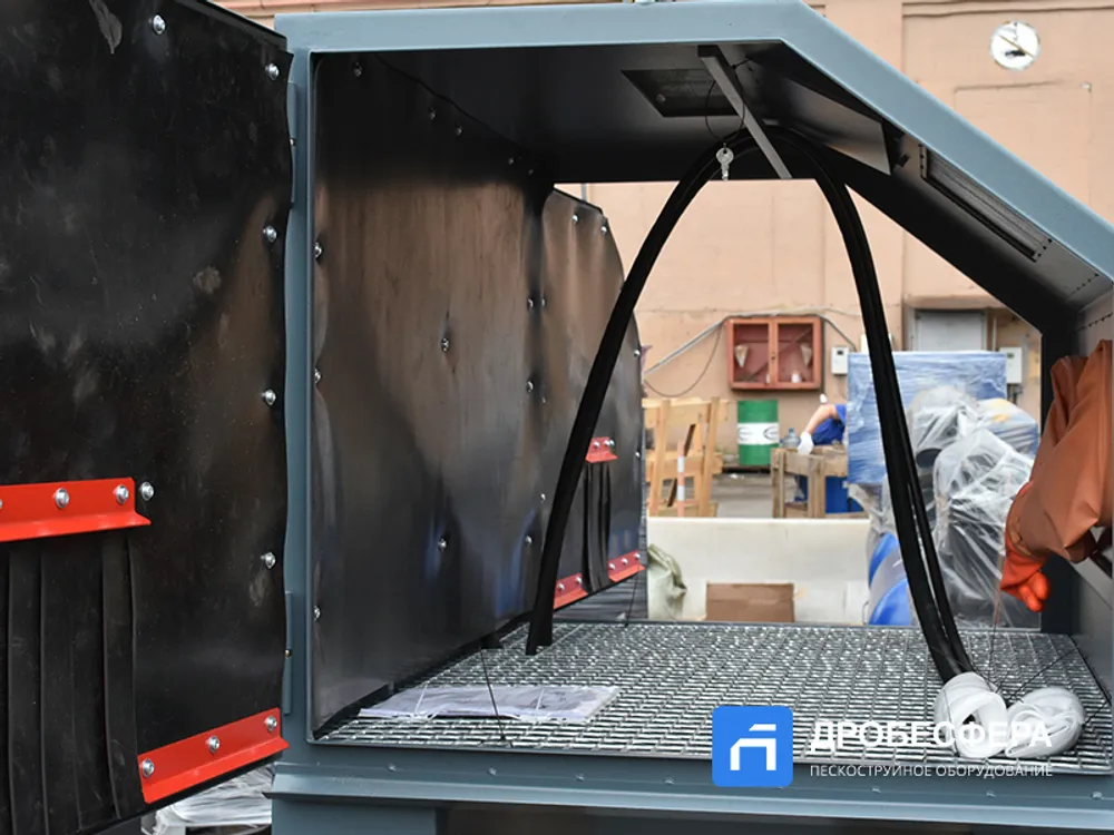 Ещё должно остаться свободное пространство для перемещения пескоструйного сопла, рук оператора и манипуляций с самим изделием.