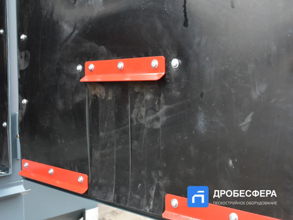 Также предусмотрены проходные двери, через которые подаются длинномерные объекты обработки. Для обработки используется до 20 кг абразива, который обрабатывает поверхность, изменяя ее физические свойства.