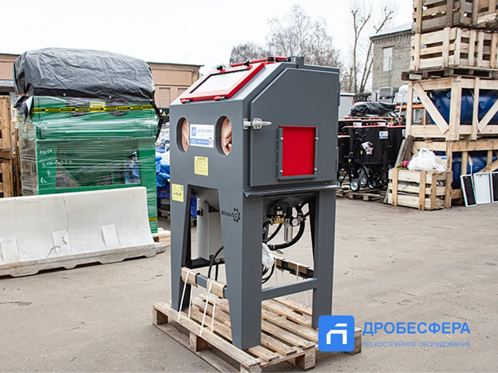 Эжекторная пескоструйная камера NowAG A-80S объемом 320 литров российского производства используется на промышленных предприятиях, в мастерских разного профиля, на СТО.
